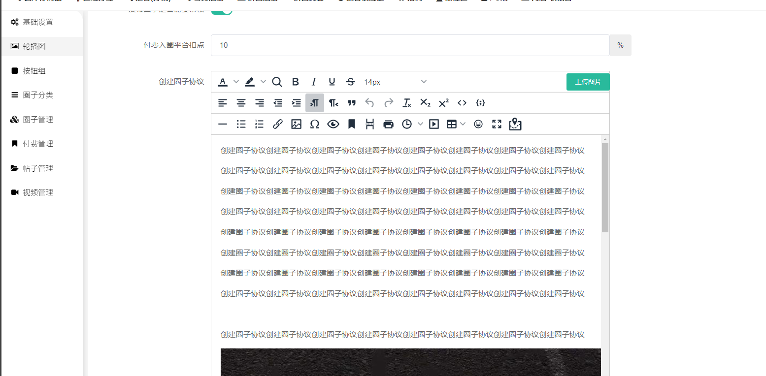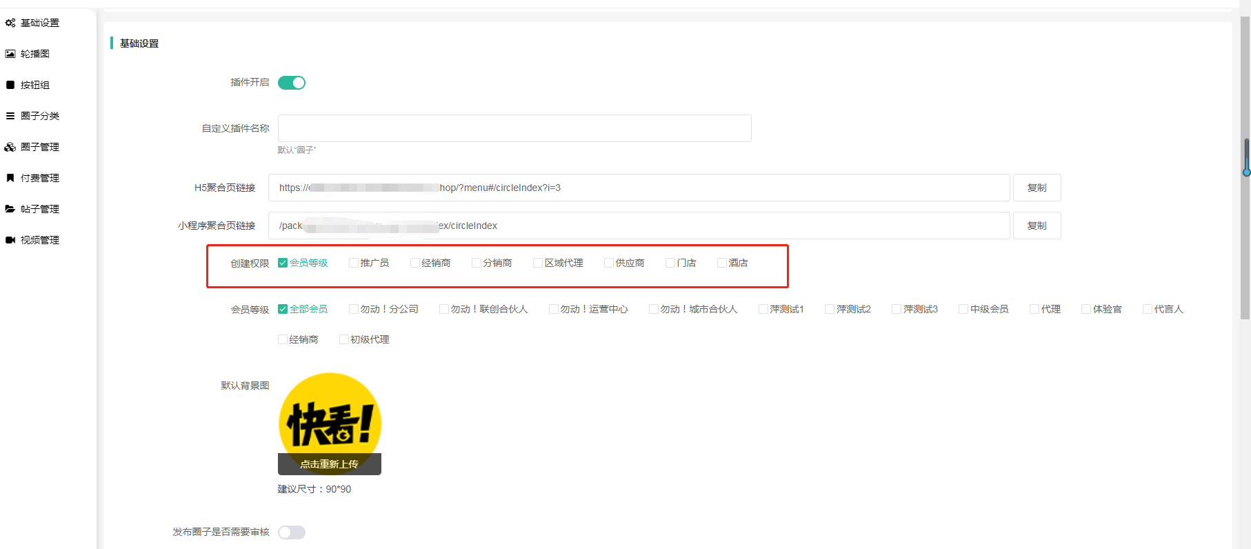 3、默认背景图(支持后台更换默认背景图、前端发布时候会员可以自定义设置单个圈子的背景图)