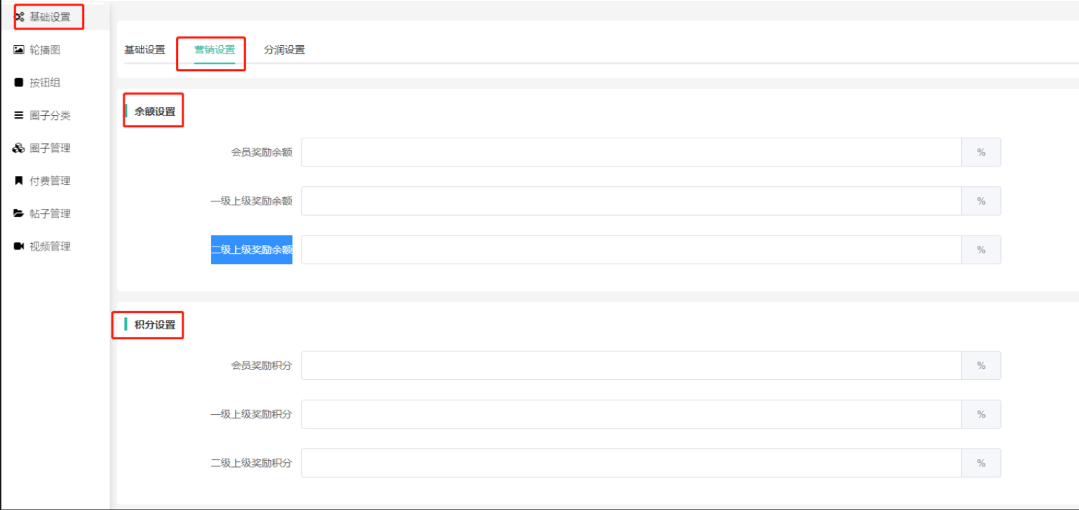 举例说明:付费入圈平台扣点:20%,开启分销,分销等级一:10%,分销等级二:20%