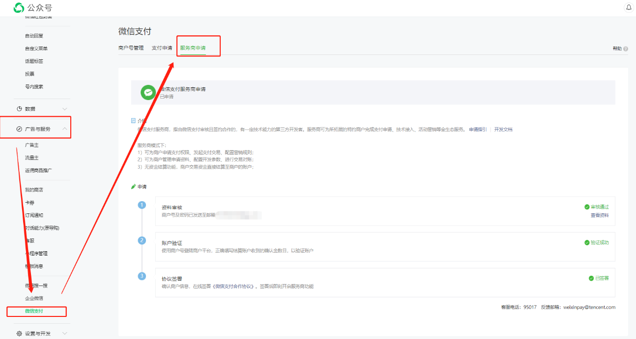 (2)通过公众号平台mp.weixin.qq.com,开通服务商