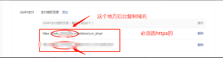 第五步;JSAPI支付配置;产品中心-开发配置-支付配置https//mwshop.tengxinhulian.com/addons/yun_shop/(*号区域需要填写登录网址的域名)