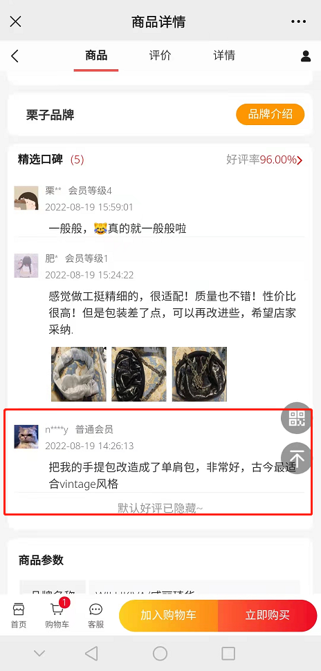 开启后订单确认收货15天后自动增加默认好评,注意:商品详情里的评价不会显示自动默认好评,仅显示默认好评已隐藏,效果如下图.