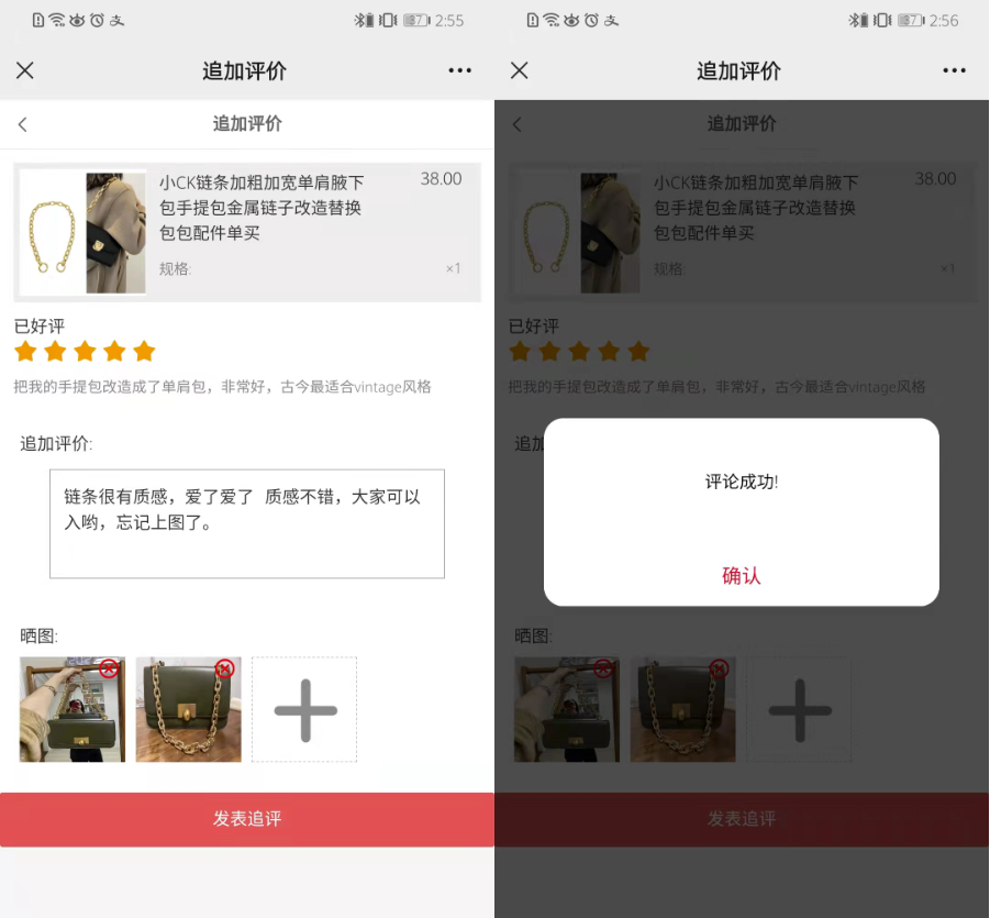 开启后评价过的订单/默认好评订单可进行追评,可以在我的订单,或我的评价可以看到追评入口,效果如下.