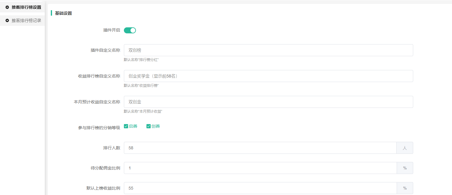 二、推客排行榜设置